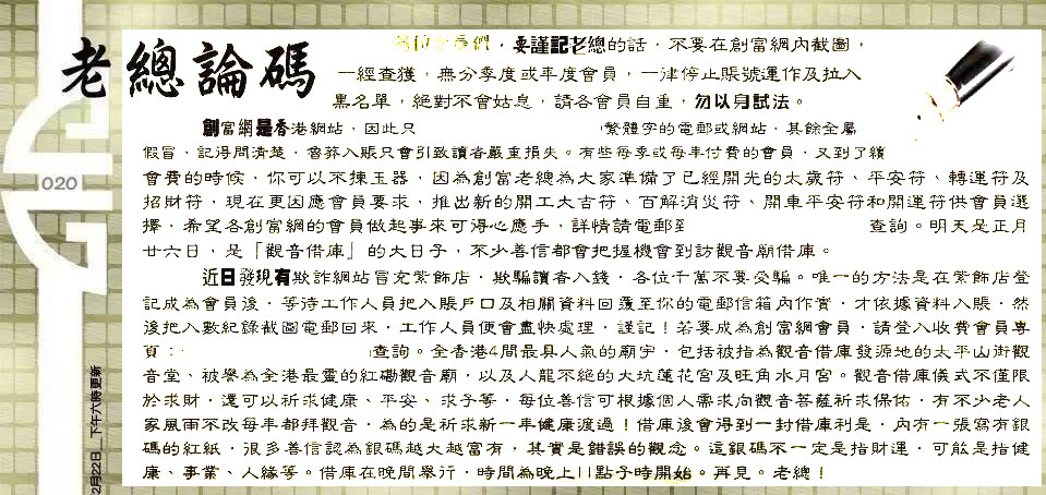 020期:六合皇金句/老总论码/萧公子/林大师/五行夺码/老 ...