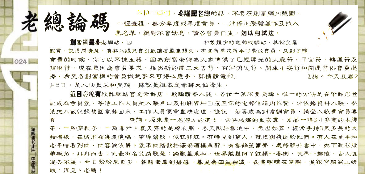 024期:六合皇金句/老总论码/萧公子/林大师/五行夺码/老总信箱截图