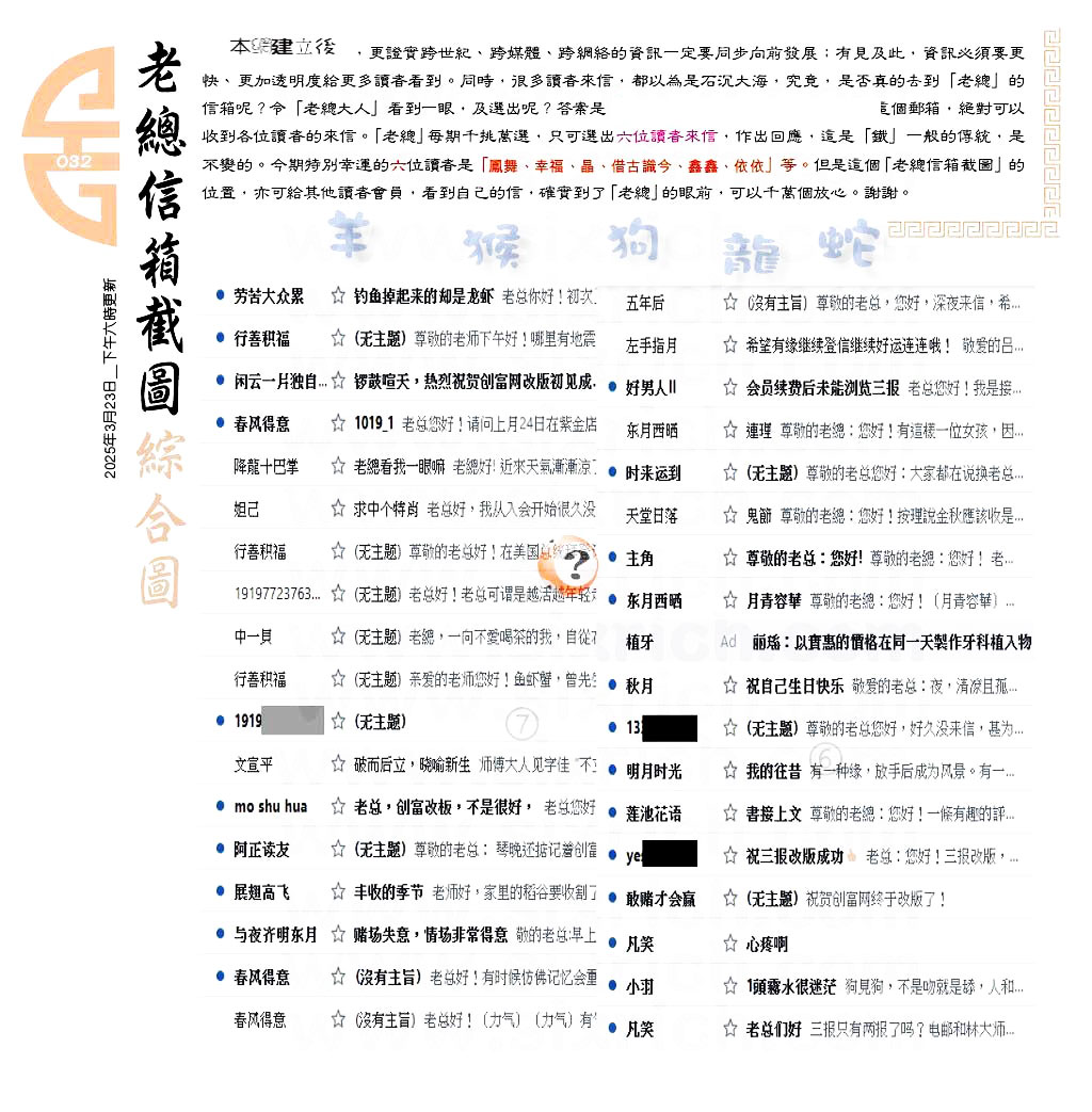 032期:六合皇金句/老总论码/萧公子/林大师/五行夺码/老总信箱截图