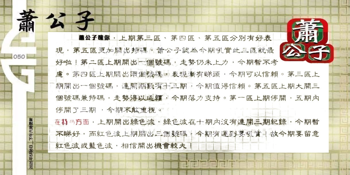 050期:六合皇金句/老总论码/萧公子/林大师/五行夺码/老 ...