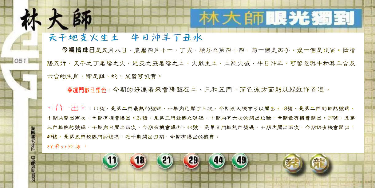 051期:六合皇金句/老总论码/萧公子/林大师/五行夺码/老 ...