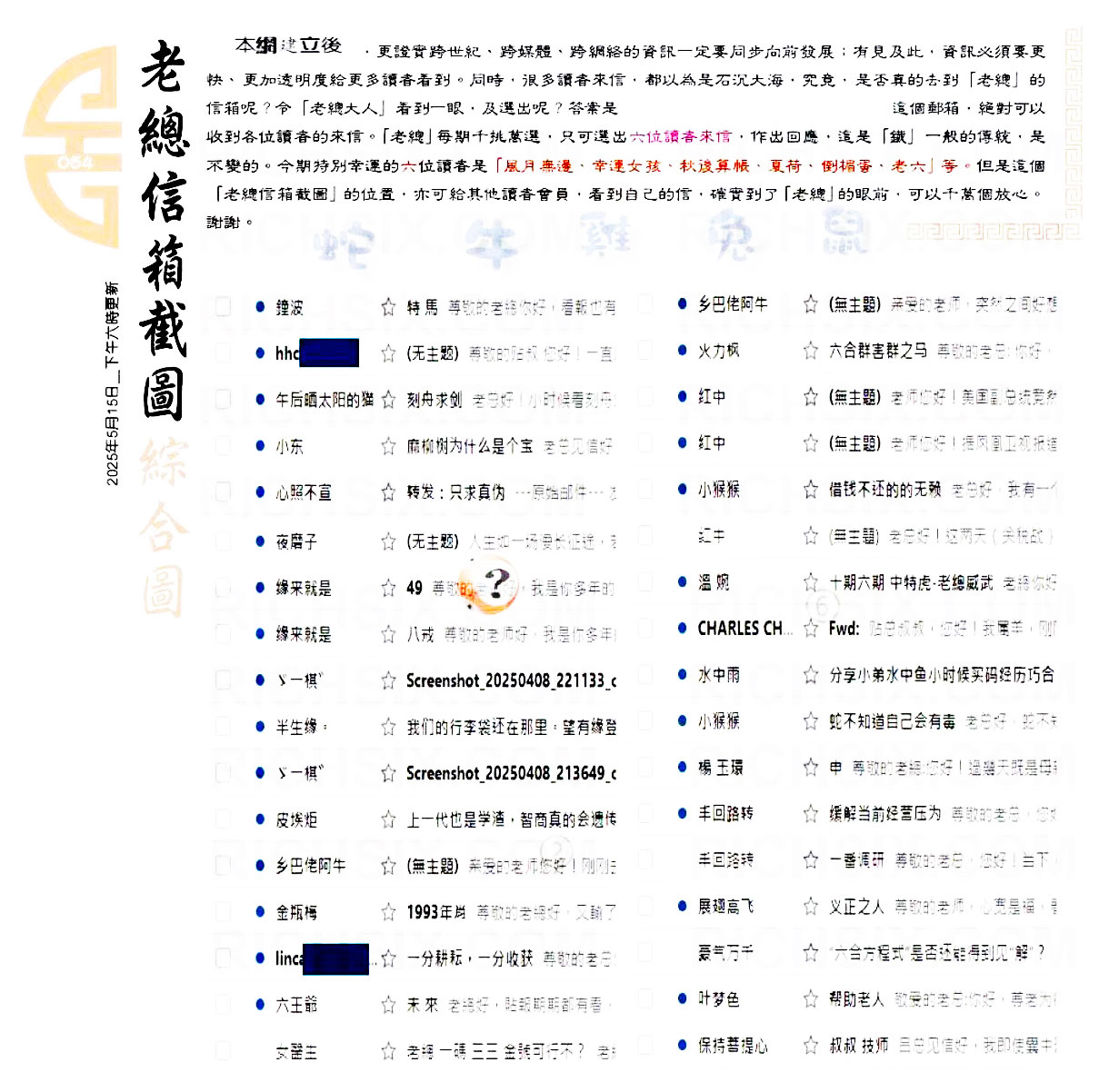 054期:六合皇金句/老总论码/萧公子/林大师/五行夺码/老总信箱截图