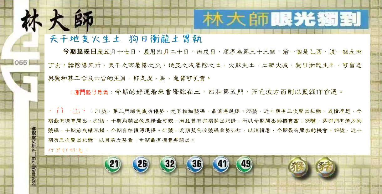 055期:六合皇金句/老总论码/萧公子/林大师/五行夺码/老 ...
